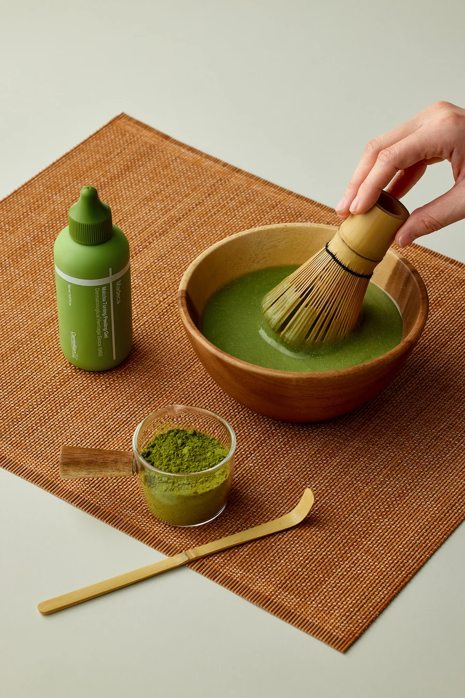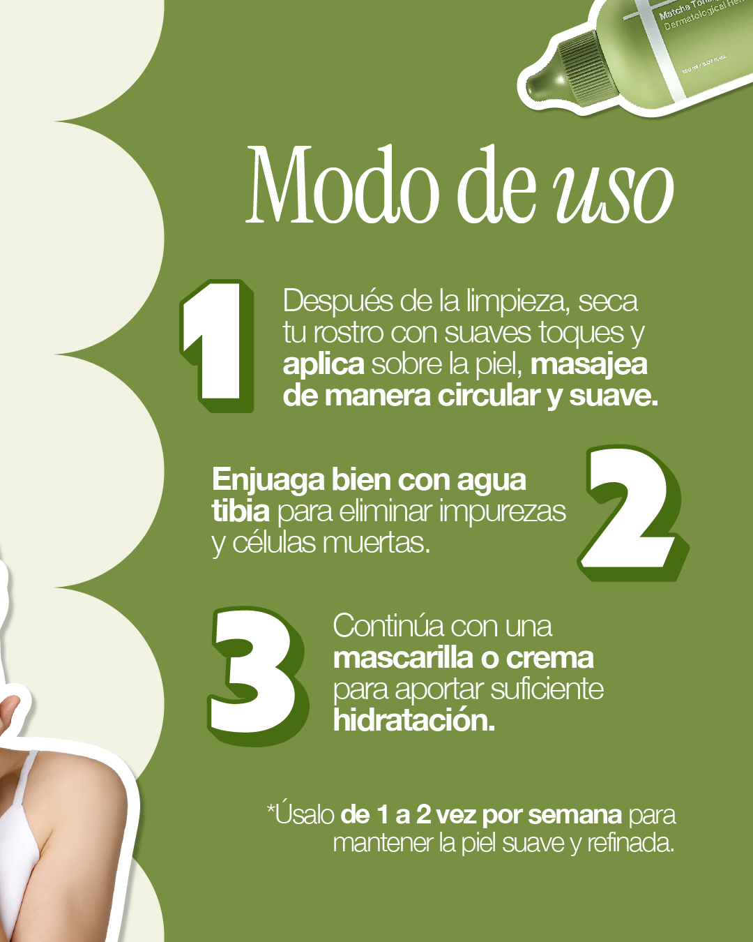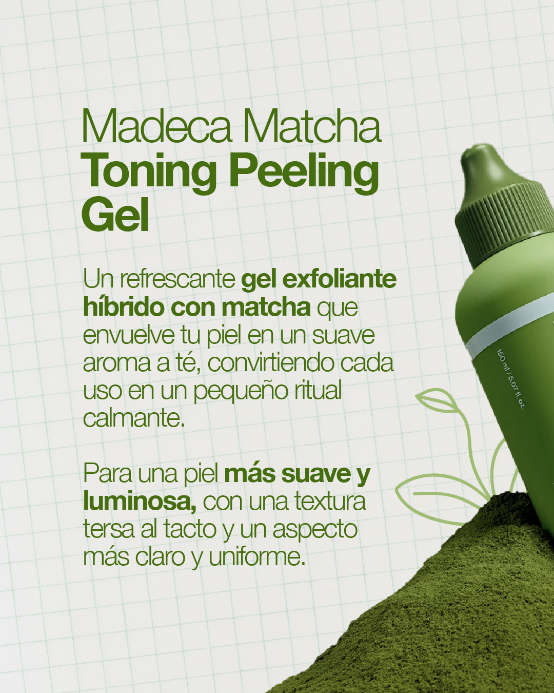 Un refrescante gel exfoliante con matcha que aporta un aroma natural a té matcha, convirtiendo cada uso en un ritual calmante para la piel.