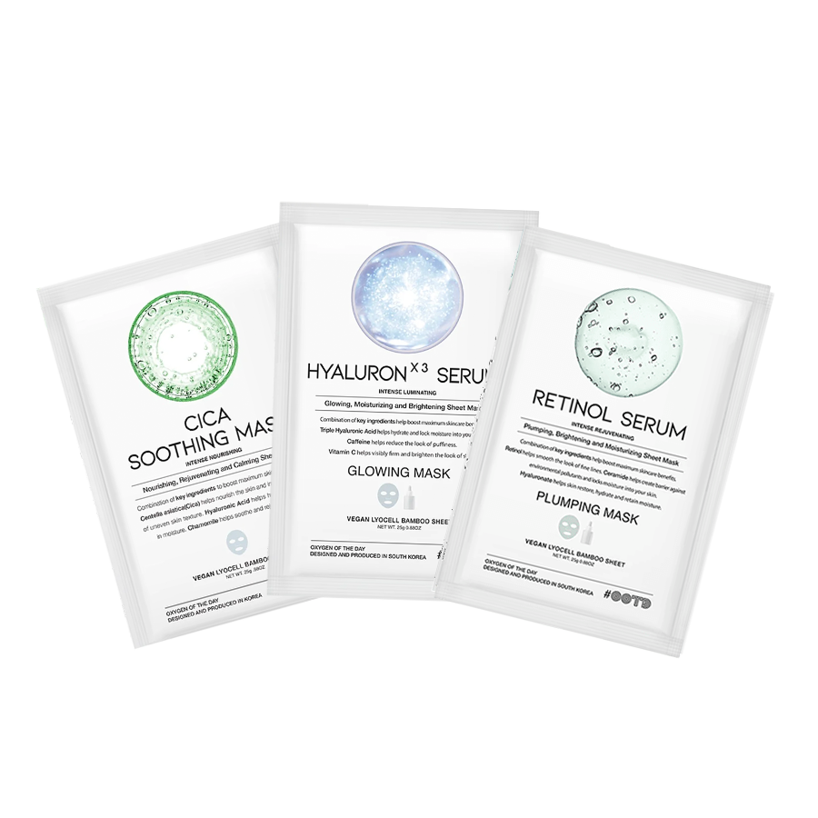 Disfruta de este pack de 3 mascarillas faciales de la marca OOTD+.